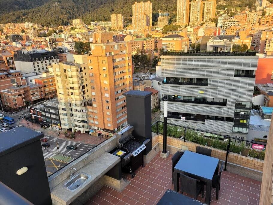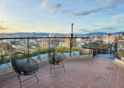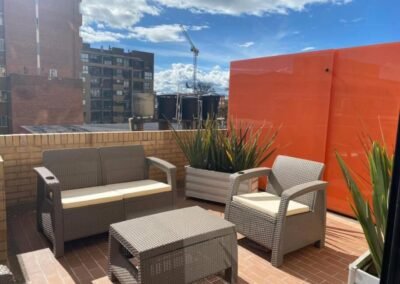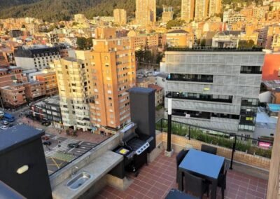 - Terraza panorámica (piso 16) con zona de BBQ.